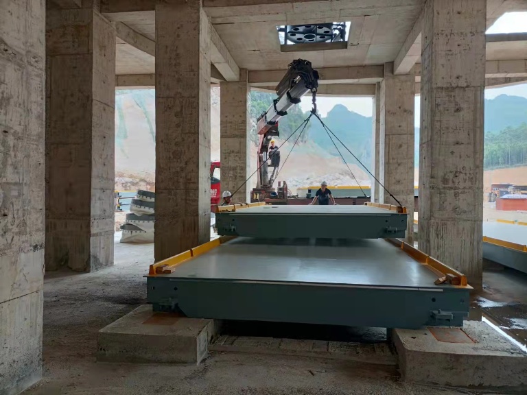 柳州特力汽車衡采用模塊化軸銷搭接,以便秤臺之間可以搭接互換,便于秤體現場安裝。限位采用縱向與橫向結合的方式,保證秤體縱向、橫向不移位。